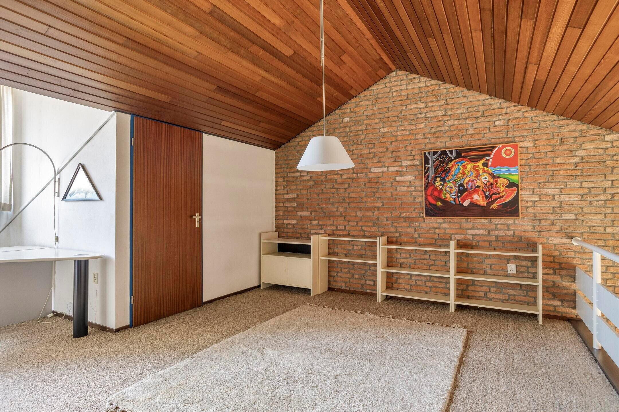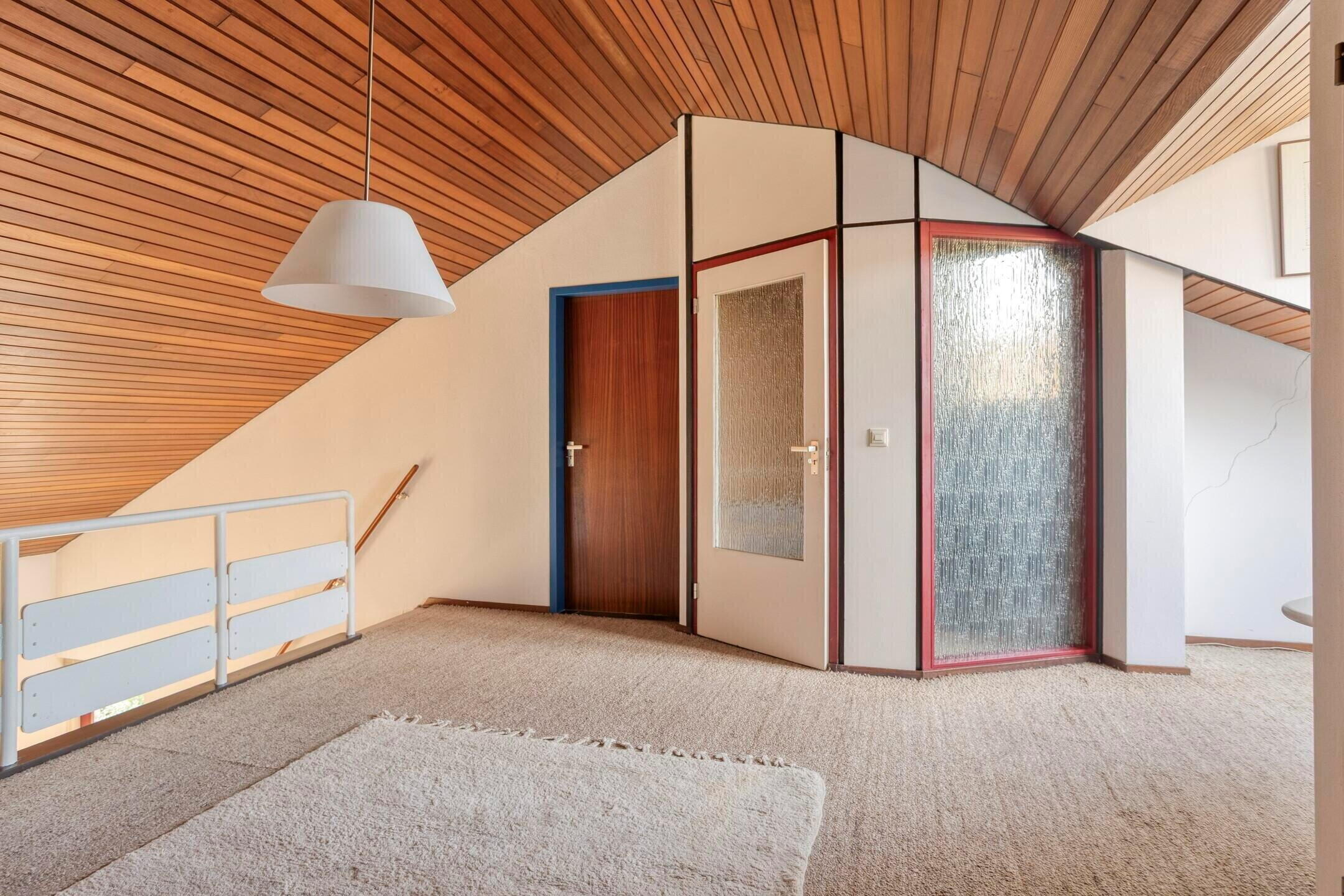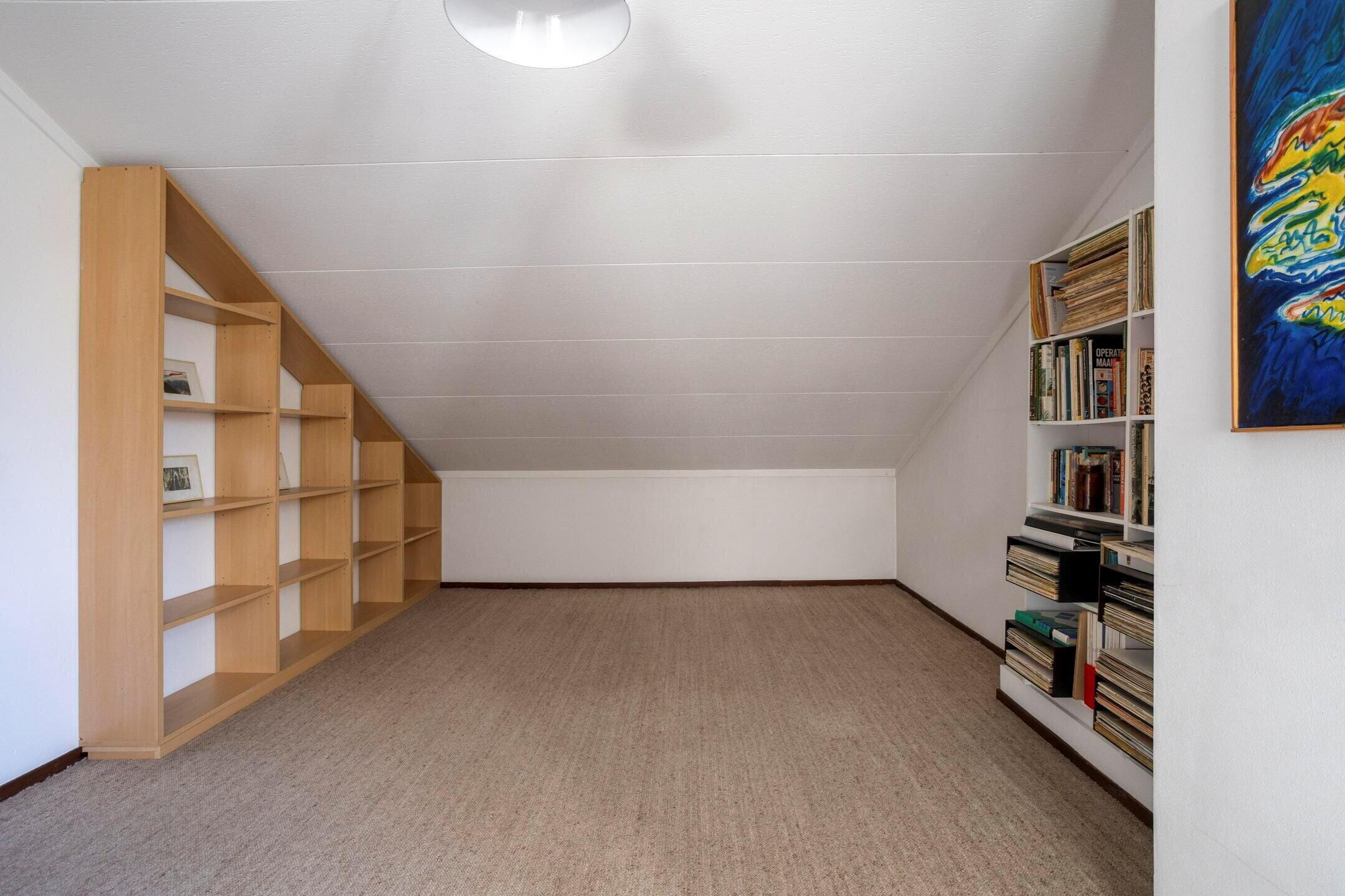 De eerste verdieping is bereikbaar via zowel de trap in de hal als de trap in de woonkamer. Op deze verdieping kom je uit op de vide/overloop, met toegang tot een slaapkamer (van maar liefst 33 m²) en een berging. Het grote pluspunt op deze verdieping is de vide: deze is functioneel te gebruiken op diverse wijzen.
